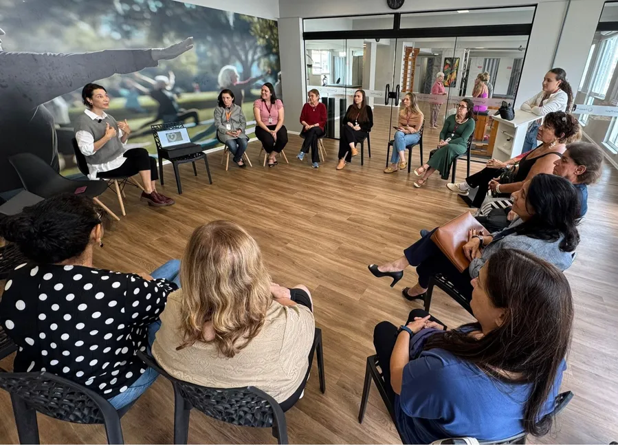 Em apoio à campanha Outubro Rosa, a Real Grandeza, em parceria com o Espaço Physio, realizou, na quinta-feira (30/10), um encontro especial no Centro de Convivência Vida e Movimento. O evento contou com a presença de Iohana Salla, diretora técnica da Laços Saúde, que compartilhou sua jornada, conhecimento e aprendizado em tratamentos oncológicos.