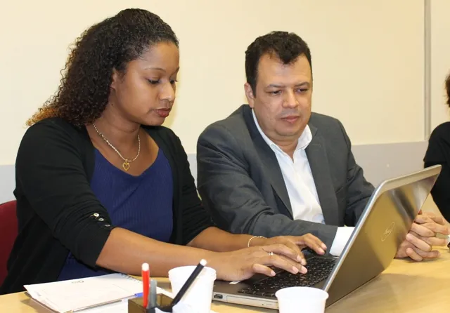 Cristianne Lana, da Gerência de Operações de Saúde (GOS) recebeu orientações de Marcelo Anjos, representante da 4Bio