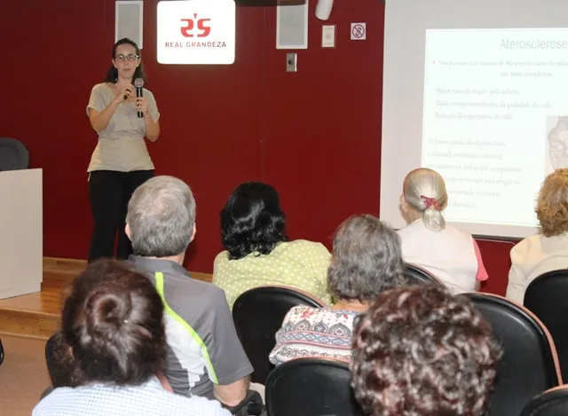 As doenças do coração foram o tema do Programa Saúde na Real do mês de setembro. Em palestra intitulada “Prevenção Cardiovascular”, realizada nesta quinta-feira (21/09), no auditório da Real Grandeza, a cardiologista Julia Moscoso falou sobre os principais sintomas, os fatores de risco e as formas de prevenção e de tratamento dessas enfermidades. Durante o evento, beneficiários do plano de saúde e colaboradores da FRG puderam ainda esclarecer diversas dúvidas com a especialista.