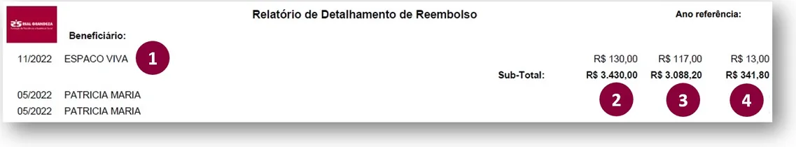 - Já nesta coluna estão descritos os valores reembolsados.