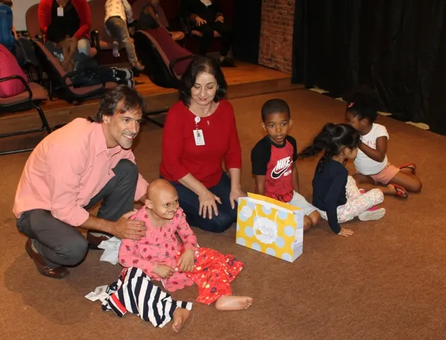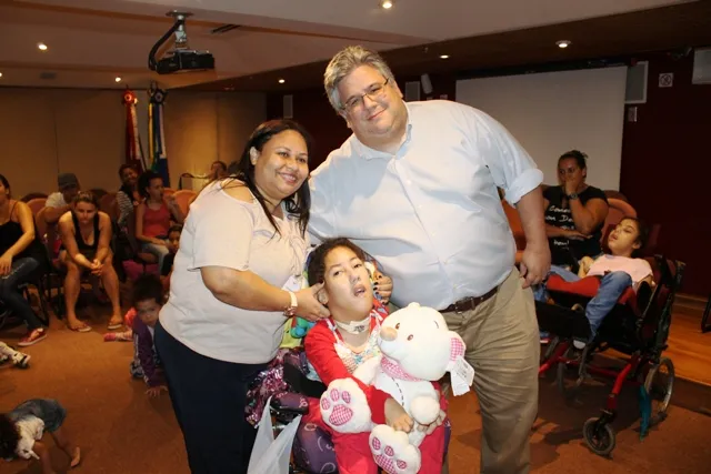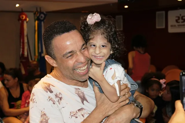 Renato Menezes, colaborador da FRG, presenteou uma criança da Amicca