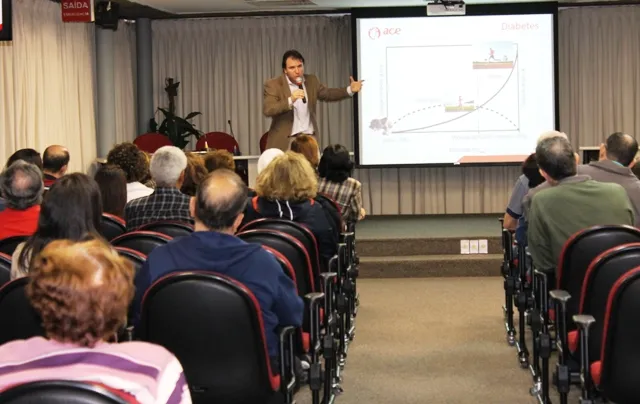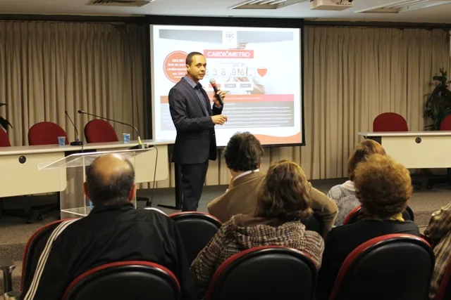 O cardiologista Mauro Auguisto dos Santos durante palestra do programa Saúde Na Real no auditório de Furnas